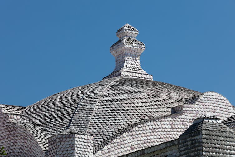 • Material de construcción. La arquitectura vernácula en Galicia utilizaba en las zonas costeras la concha “plana” de la vieira como capa impermeable. En la isla de La Toja (Ayuntamiento de O Grove, Pontevedra) se puede admirar la capilla de San Caralampaio con esta técnica constructiva en todo su esplendor.