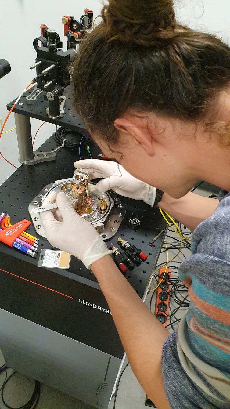 En el laboratorio, la fuente se enfría en un criostato hasta unos escalofriantes 7 grados por encima del cero absoluto (−273.15 °C), lo que equivale a unos -266 °C. Es casi lo más frío que se puede estar.