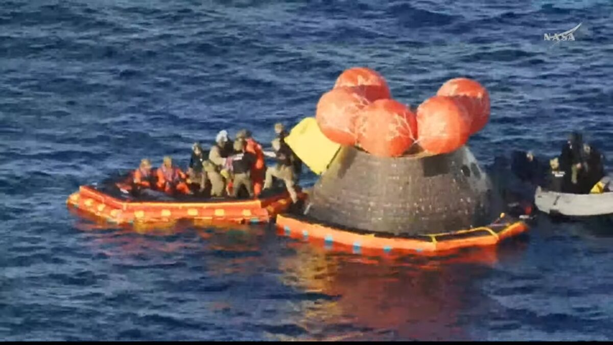 Y en estos momentos, la tripulación ya está fuera de la Orion. Desde la apertura de la escotilla hasta que los astronautas han salido ha transcurrido más de media hora. Pero una vez empezaron a salir, la operación es rapidísima. Aunque, la operación de rescate no está terminada, aún falta por ver a los helicópteros recoger a los astronautas y aterrizar en el barco USS John P. Murtha.