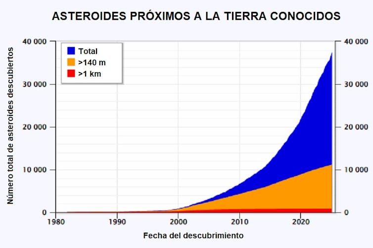 Afortunadamente, los programas de seguimiento telescópico detectan decenas de asteroides cada mes. La mayoría de ellos poseen pocas decenas de metros y no constituyen un riesgo para nosotros dado que la atmósfera terrestre es muy eficiente en fragmentar cuerpos rocosos de ese tamaño que nos alcanzan a hipervelocidad.