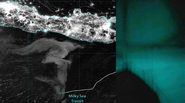 Imagen de satélite del mar de leche en Java. Steven Miller, Leon Schommer y Naomi McKinnon, Universidad Nacional de Australia, CC BY