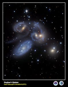 El Quinteto de Stephan es un conjunto de cinco galaxias: NGC 7319, NGC 7318 (A y B), NGC 7317 y NGC 7320. Imagen tomada por el GRANTECAN. Daniel López / IAC