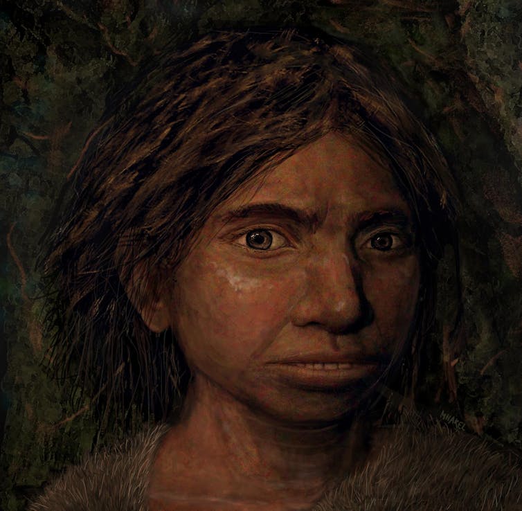 Reconstrucción del aspecto de una joven denisovana a partir de análisis del ADN de restos de este homínido. Maayan Harel, CC BY-SA