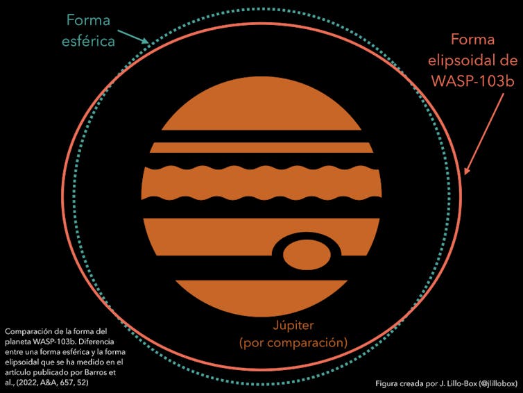 En ese tiempo, el planeta WASP-103b recorre los tres millones y medio de kilómetros de su órbita alrededor de su estrella. Este es uno de los apodados ‘Júpiter caliente de periodo ultra-corto’.