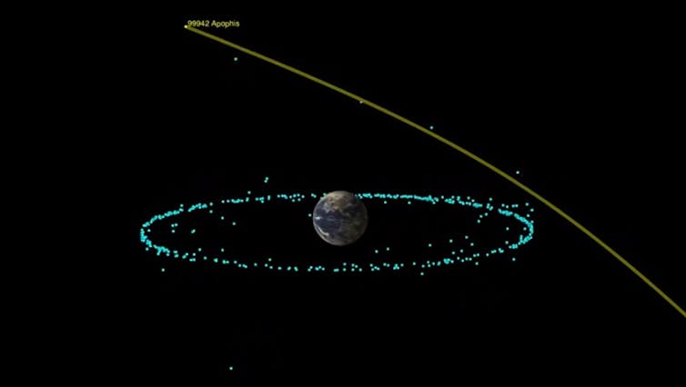 Pese a no encontrarse ahora mismo en la lista de encuentros próximos con la Tierra de los asteroides potencialmente peligrosos del programa Sentry de la NASA, la aproximación de Apophis será a menos de la décima parte de la distancia que nos separa de la Luna. Y, para los más supersticiosos, ocurrirá un viernes 13.