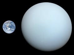 Descubierto en 1781 por el astrónomo William Herschel, Urano describe una órbita alrededor del Sol en 84 años. La duración de su día es de unas 17 horas y 14 minutos. Aunque su masa es 14 veces y media mayor que la terrestre, se trata del planeta gigante menos masivo.