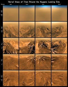 En la superficie de Titán podría pasearse sin mucho esfuerzo –salvo el necesario para vencer algunos vientos huracanados de hasta 180 km/h–, ya que es relativamente plana. Todas las imágenes de las que disponemos no muestran relieves topográficos superiores a 2 000 m de altura.