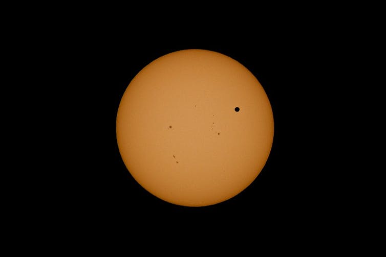 Y así es. Pensemos en la Tierra. Como sucede con todos los planetas, su órbita está contenida en un plano fijo, invariable. Eso quiere decir que, a medida que nuestro mundo circunda el Sol, solo hay una región muy pequeña del cosmos desde la que podría observarse el planeta recortado como un puntito negro minúsculo contra el disco solar: se trata de una estrecha banda del cielo a un lado y a otro de nuestro plano orbital.