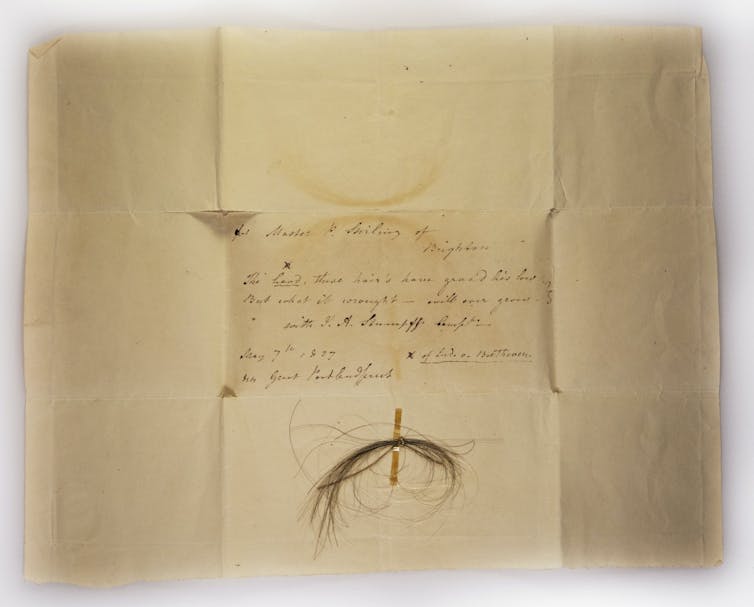 Lo que había era pelo. En la época de Beethoven, era habitual coleccionar mechones de personas famosas o seres queridos. Decenas de mechones atribuidos a Beethoven se conservan en colecciones públicas y privadas.