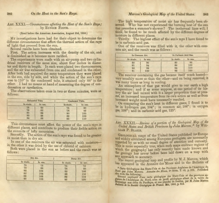 El informe en cuestión llevaba por título Circumstances Affecting the Heat of Sun’s Rays y su autora era, para sorpresa de todos, una mujer, Eunice N. Foote.