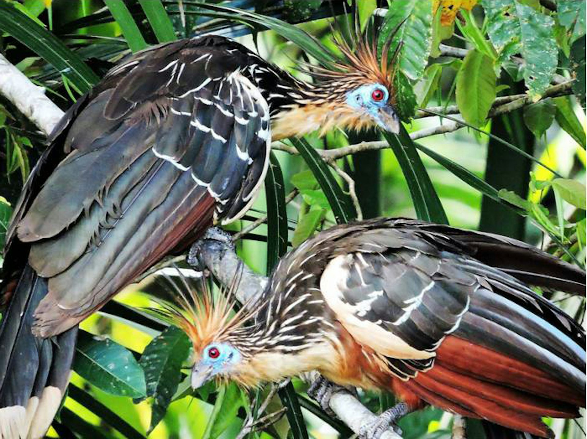 El hoatzin (Opisthocomus hoazin) habita pantanos y ríos de la región orinoco-amazónica, y acumula características únicas y sorprendentes, tanto para los observadores, como para los científicos. El hoatzin es un verdadero quebradero de cabeza para los expertos en filogenia aviar. Hasta ahora, no ha sido posible determinar con precisión sus relaciones de parentesco con otras aves.