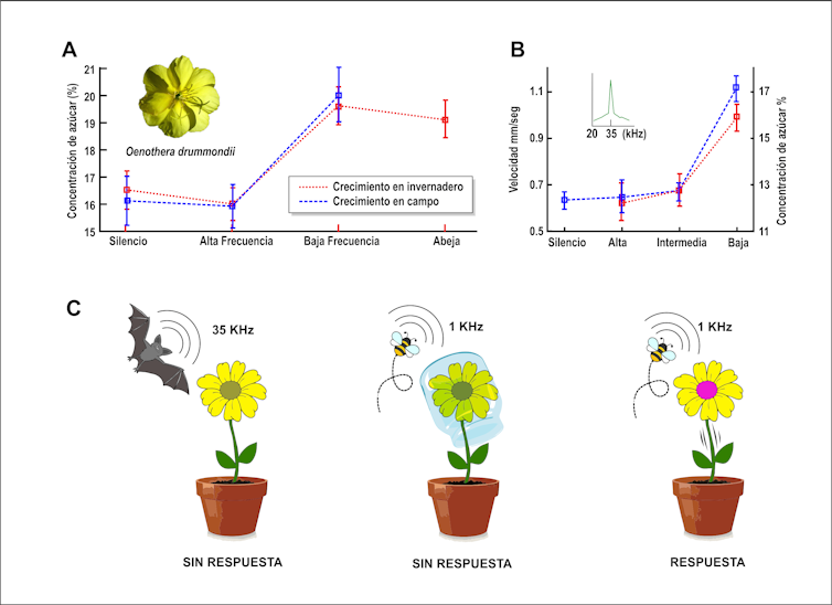 Esa es la respuesta que ofrece Oenothera drummondii, capaz hacer vibrar sus pétalos y aumentar la concentración de azúcar en el néctar, a cuyas variaciones las abejas son extraordinariamente sensibles, en una rápida respuesta a diferentes frecuencias de sonido, incluidas grabaciones directas de las vibraciones producidas por los polinizadores y sonidos sintetizados de frecuencias similares.