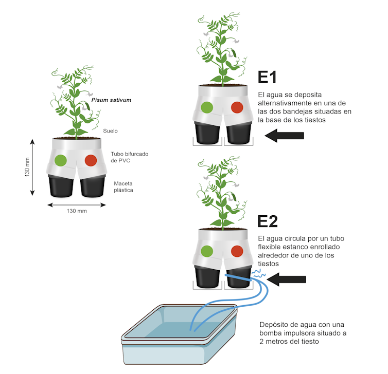 En otro escenario, en el que las raíces no tenían acceso al agua, el mismo porcentaje de plantas fueron capaces de localizarla detectando las vibraciones generadas por el caudal que circulaba dentro de unos tubos de PVC que rodeaban los tiestos.