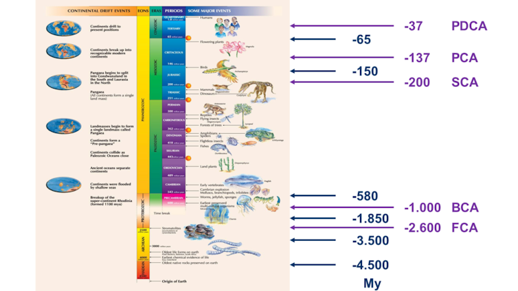 Para ubicar mentalmente las edades estimadas que tienen estas nucleasas Cas ancestrales resucitadas informáticamente recordemos que la Tierra tiene una edad de ~4.500 millones de años; las evidencias más antiguas de células procariotas son de hace ~3.500 millones de años; las células eucariotas (con núcleo, producto de la fusión de varias bacterias según la teoría endosimbionte propuesta por Lynn Margulis) aparecieron hace ~1.850 millones de años; la explosión Cámbrica que dio lugar a la mayoría de grupos de animales que existen hoy en día tuvo lugar hace ~580 millones de años; el Braquiosaurio (uno de los dinosaurios más grandes que jamás existieron, el primero que sale en la película Parque Jurásico) se extinguió hace ~150 millones de años y el resto de dinosaurios se extinguieron hace 65 millones de años, exceptuando los que dieron lugar a las aves actuales.